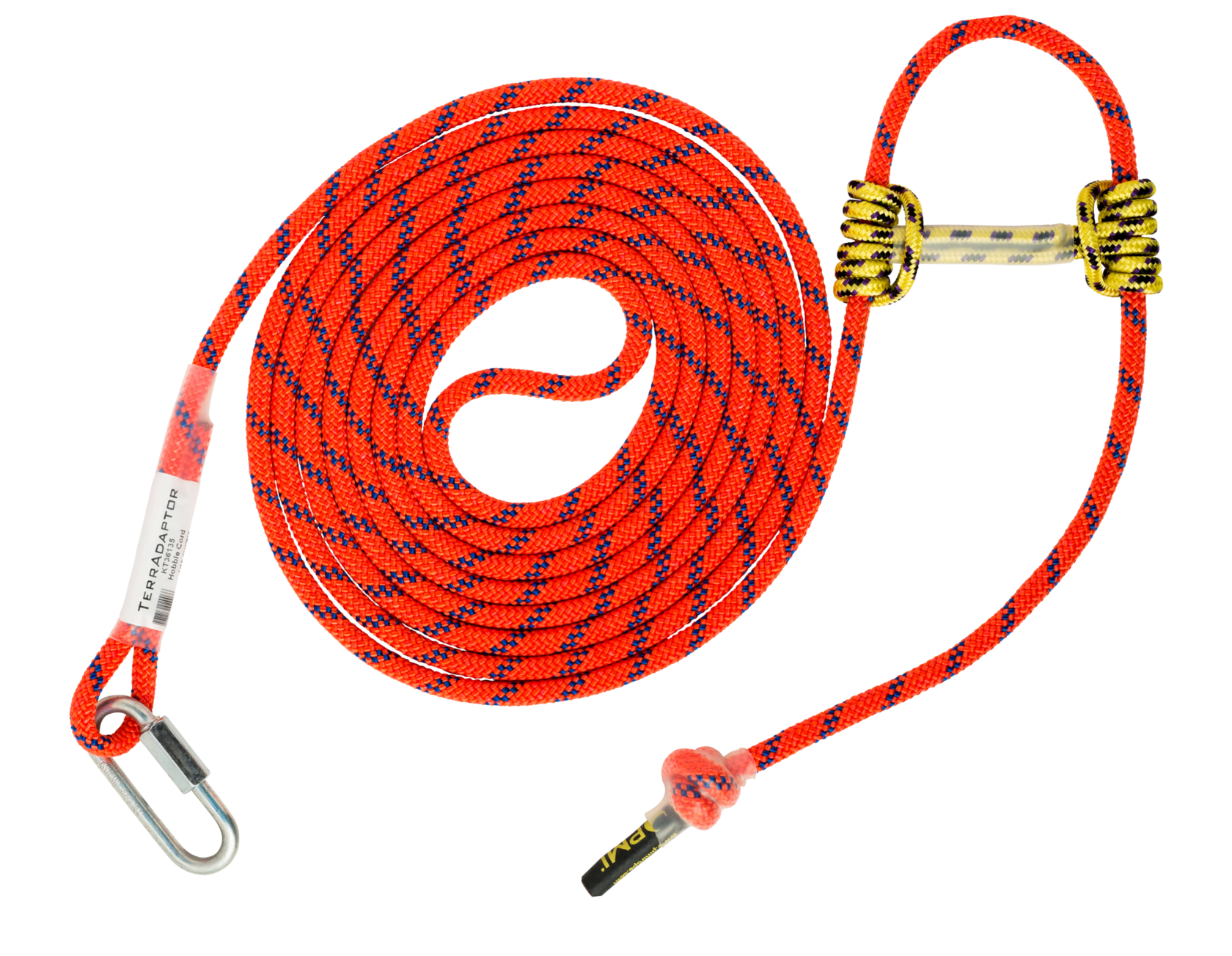 The TerrAdaptor Lash Ring is designed to provide multiple attach points for stabilizing the tripod. Each TerrAdaptor tripod comes with 2 lash rings and additional accessory lash rings are available for purchase, if desired. Lash rings can be installed in any position, in any quantity and in any orientation along the perf tubes (small diameter leg). For lighter loads, especially in a MonoPod configuration, the lash ring may serve as an auxiliary main attachment point.